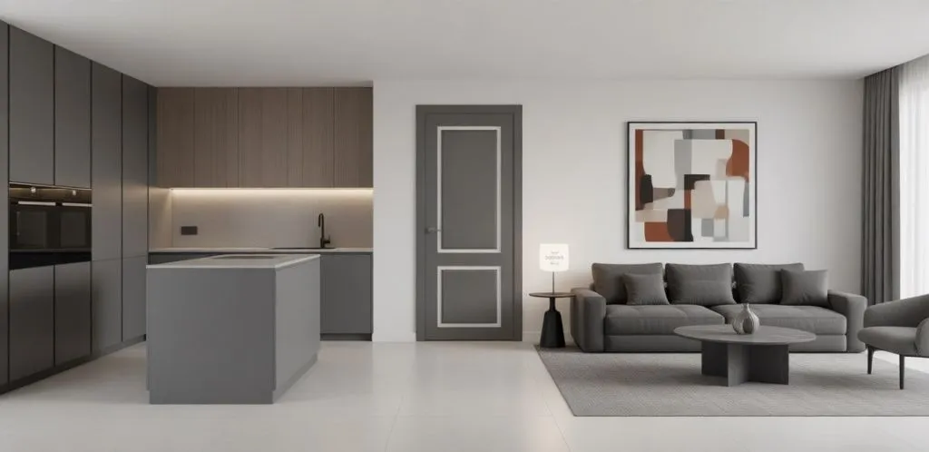 Серые двери — классический выбор, подходящий для любого стиля интерьера. Они выглядят современно и утонченно, гармонично вписываясь в концепцию минимализма или эклектики. Серый оттенок также легко комбинируется с мебелью и элементами декора, создавая гармоничный интерьер.