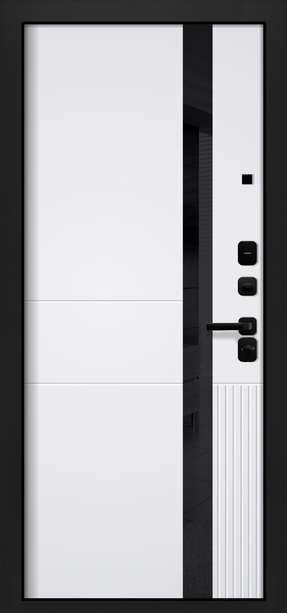 Цвет внутренней панели: velutto bianco + черное стекло с фацетом