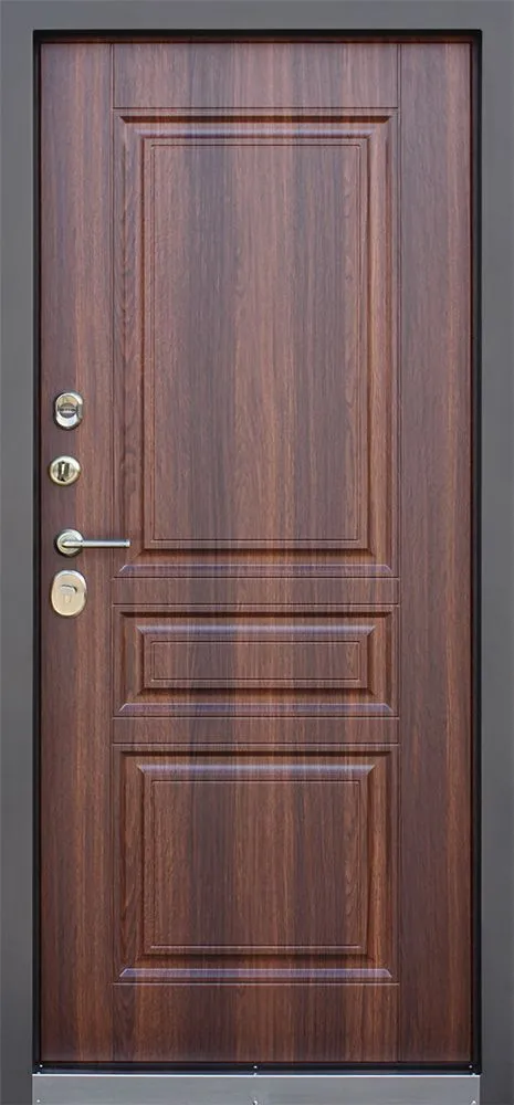 Дополнительно: Евроцилиндр К-В перфокарта. Броненакладка врезная. Штырь противосъемный (3 шт). Накладки со шторками-автомат. Порог из нержавеющей стали (цвет "хром").